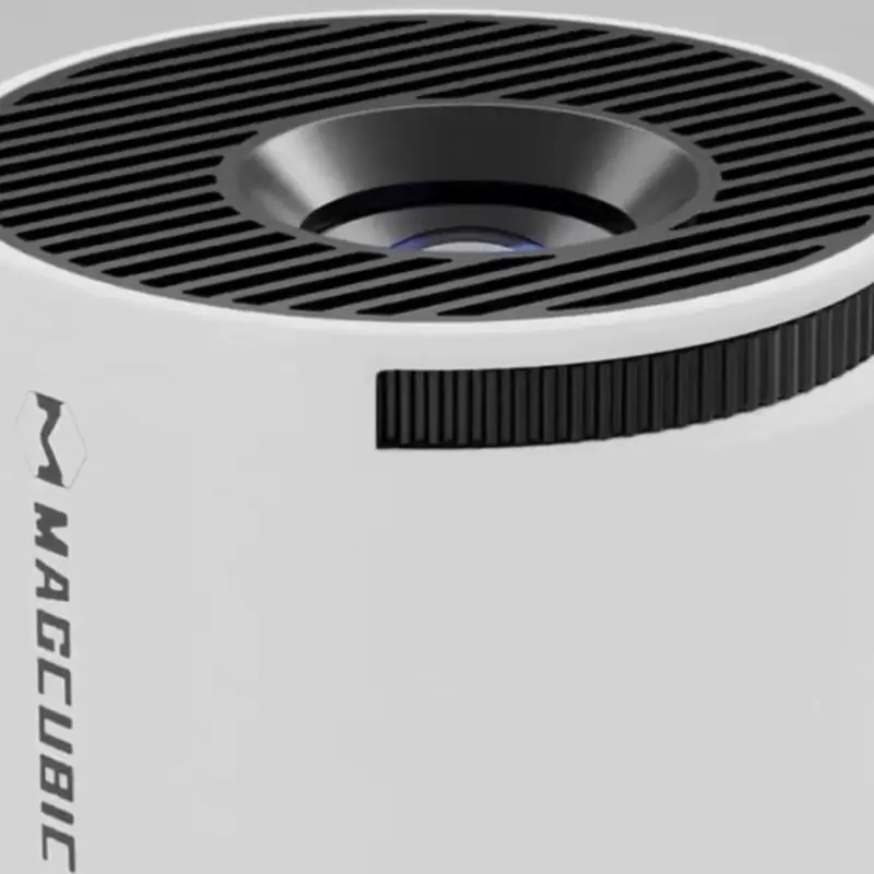 Entdecken Sie den tragbaren 4K-Projektor in seinem hochwertigen Gehäuse, der sich vor Ihren Augen dreht: Jeder Winkel offenbart eine raffinierte Verarbeitung, ein kompaktes und robustes Design, das sich Ihrem modernen Lebensstil anpasst.